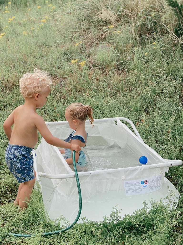 BiBaBad är tillräckligt rymligt för ett eller flera barn, från nyfödd upp till cirka 8 år. När det inte används kan det smidigt fällas ihop och hängas på väggen, vilket är perfekt för små utrymmen eller resor. Med en praktisk avtappningsfunktion som placeras över golvbrunnen är det både hygieniskt och lätt att tömma.