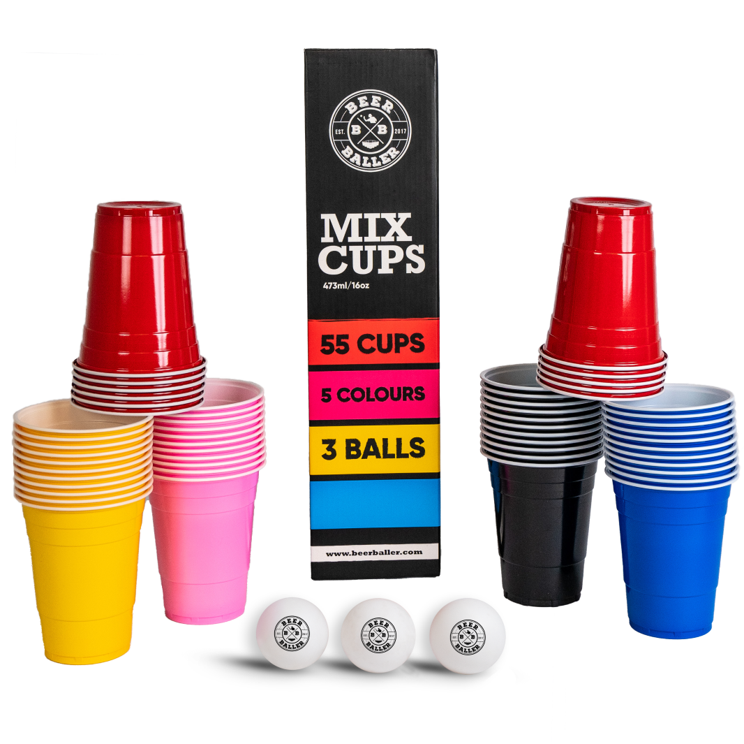 BeerBaller GmbH presenterar "Blanda koppar", en perfekt lösning för dig som inte kan bestämma vilken färg du vill ha på dina koppar. Med detta set får du en blandning av 55 koppar i fem olika färger, vilket ger dig möjligheten att alltid ha en passande kopp till hands.