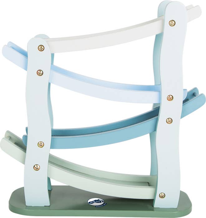 Redo, gå! Denna kompakta bilbana i robust trä passar in i alla barns rum med sin enkla, tidlösa design. Storleken är idealisk för små barns händer. Fyra färgkoordinerade bilar ger snabba, underhållande körglädje gång på gång!