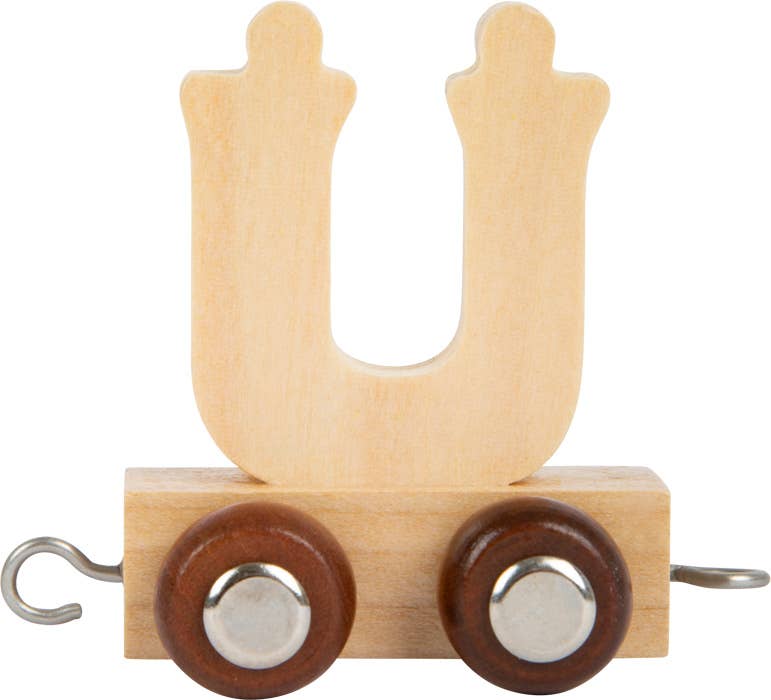 En UE gjord av trä! Detta brev av naturligt trä kan hängas på alla små fotbrevståg. På detta sätt kan du också skapa namn och ord som innehåller en umlaut.
