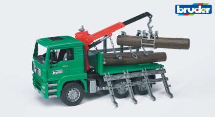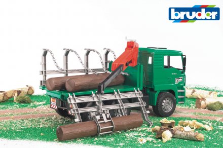 Denna timmerbil är utrustad med en fullt fungerande lastkran. Kranen har en grip som gör det enkelt att lasta och lossa de medföljande trädstammarna. Detta ger en autentisk upplevelse av timmertransport.