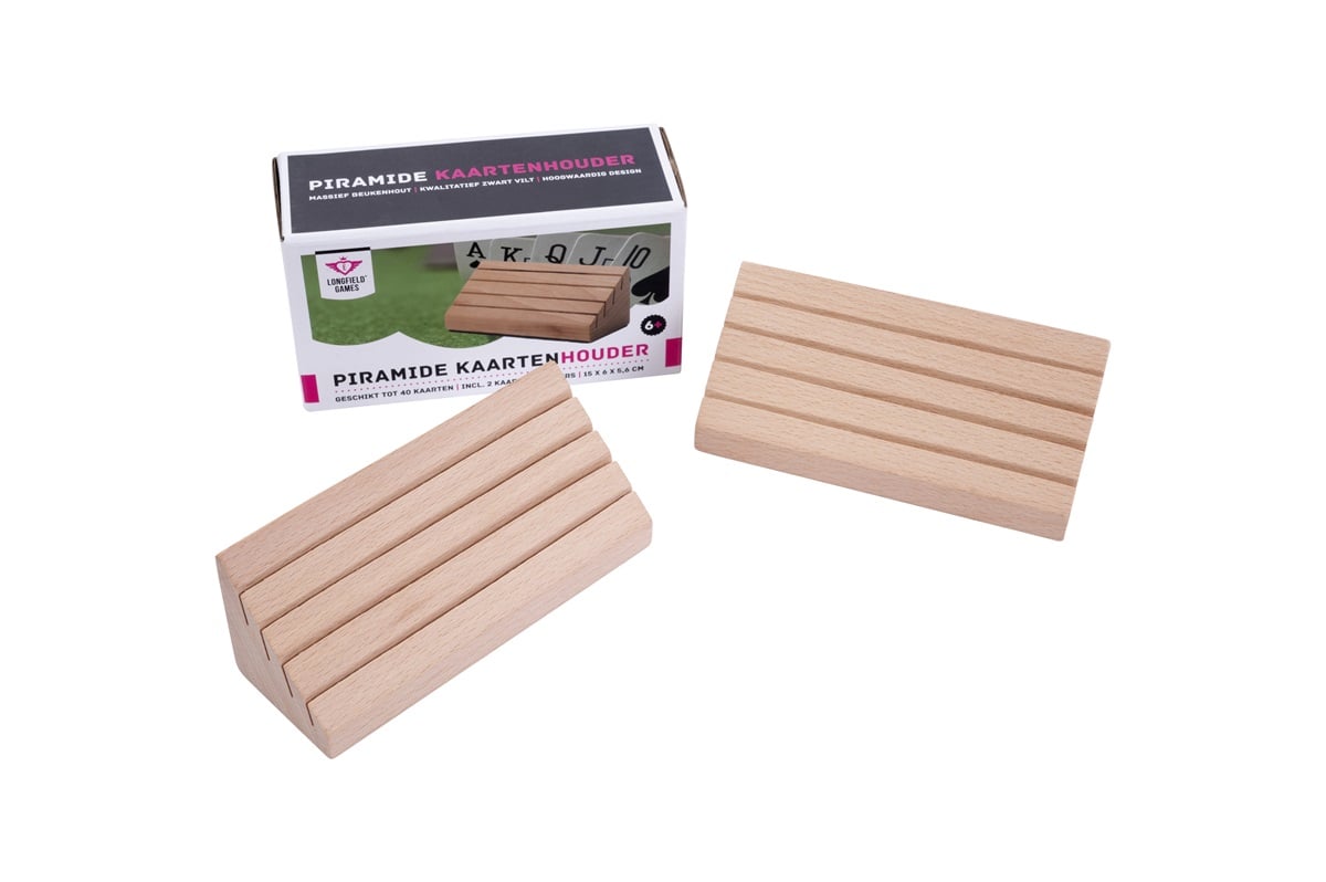 Engelhart presenterar den eleganta korthållaren Pyramid, tillverkad av fint bokträ. Denna korthållare är designad för att ge en stilren och funktionell lösning för att organisera dina kort. Med sin naturliga träfinish blir den ett smakfullt inslag i varje spelrum eller kontor.