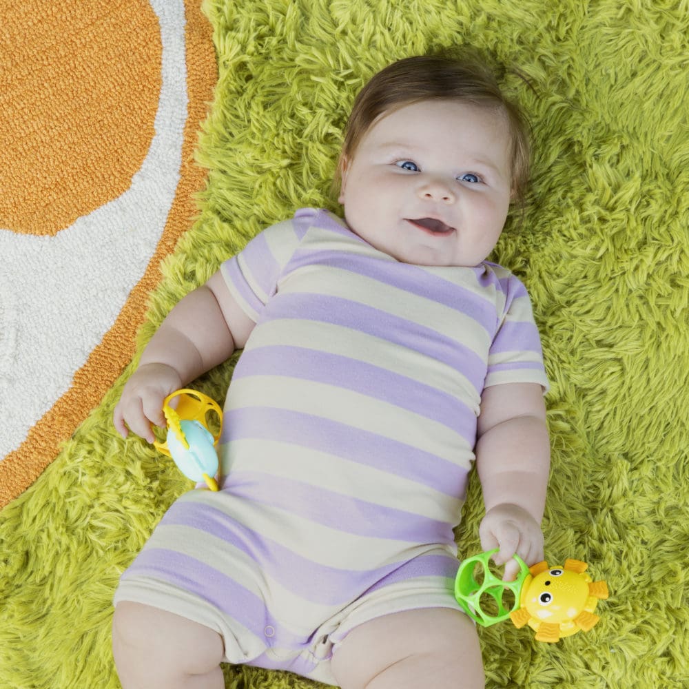 Dubbelt så mycket roligt och dubbelt så mycket lugnande för din lilla vilding! Dessa leksaker är lätta att ta med sig och passar i en standardblöjväska. De är också enkla att rengöra – torka bara av med en fuktig trasa och mild tvål. Perfekta för nyfödda och uppåt, dessa leksaker är utmärkta presenter för alla tillfällen.