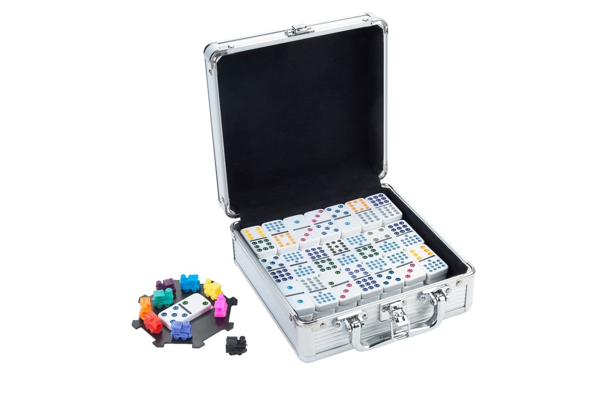 Domino dubbel 12 mexikanska tåg aluminiumfodral / PU 4 från Engelhart är ett högkvalitativt spelset som erbjuder timmar av underhållning. Detta set innehåller 91 dominobrickor med färgade ögon och är perfekt för både nybörjare och erfarna spelare. Med antalet på klossarna som går upp till 12, kan du njuta av en utmanande och engagerande spelupplevelse.