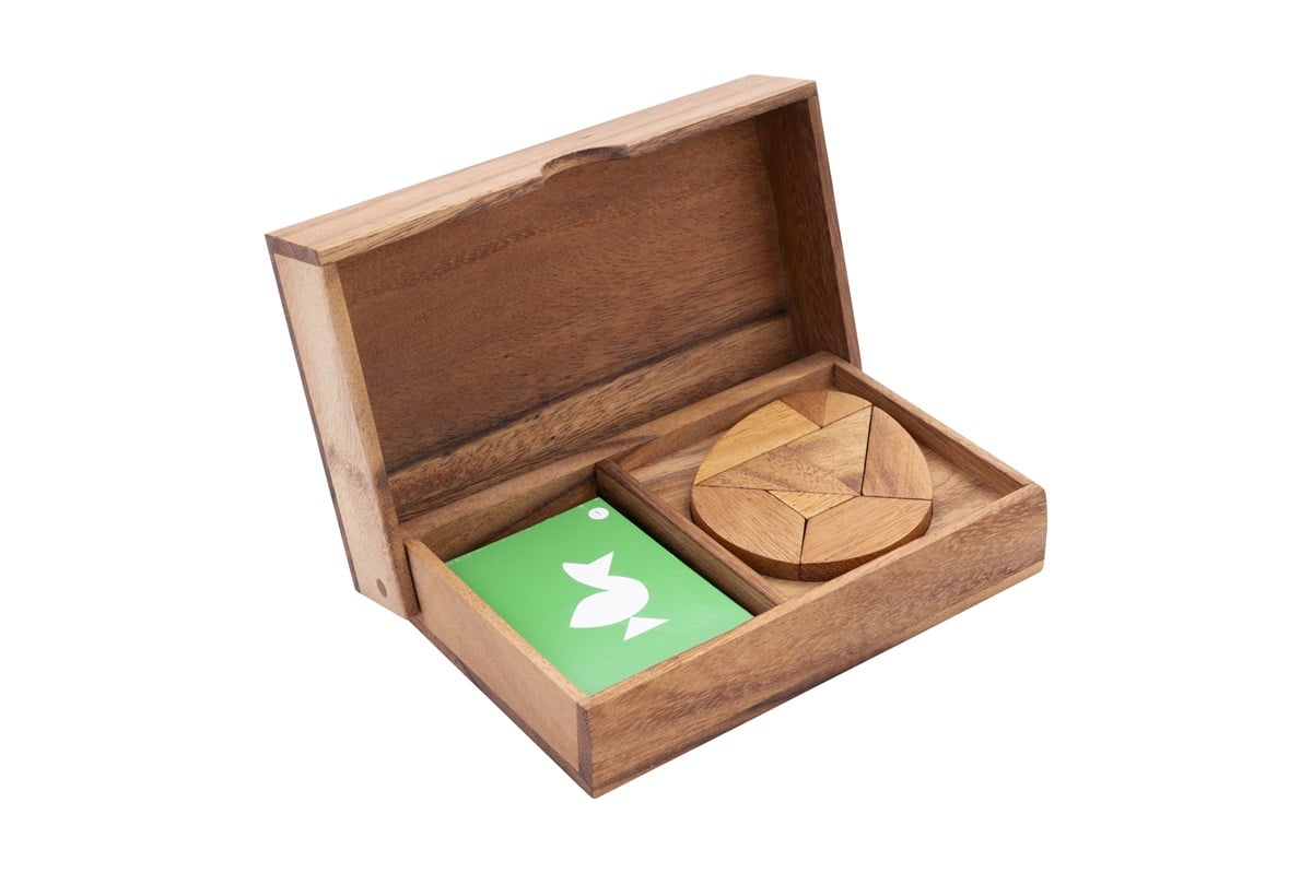 Engelhart presenterar Dubbelt Tangramägg, ett pussel som kombinerar hållbarhet och kreativitet. Tillverkat av ekologiskt akaciaträ, erbjuder detta pussel en miljövänlig lösning för den medvetne konsumenten. Materialvalet säkerställer inte bara en hög kvalitet utan också en långvarig hållbarhet, vilket gör det till ett utmärkt val för både barn och vuxna.