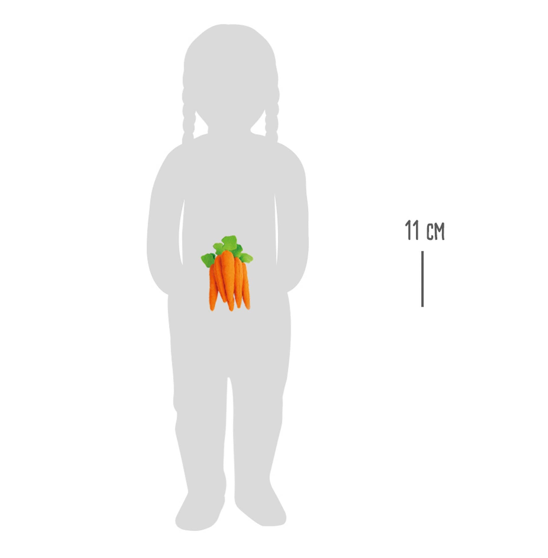 uppsättning av 7 Dessa filt morötter berikar alla grönsaksställ och är en hälsosam blickfång i Tante Emma-butiken. Passar även som tillbehör för rollspel runt hästar, ponnyer och gårdar. Det perfekta tillbehöret för barnens kök och butik.
