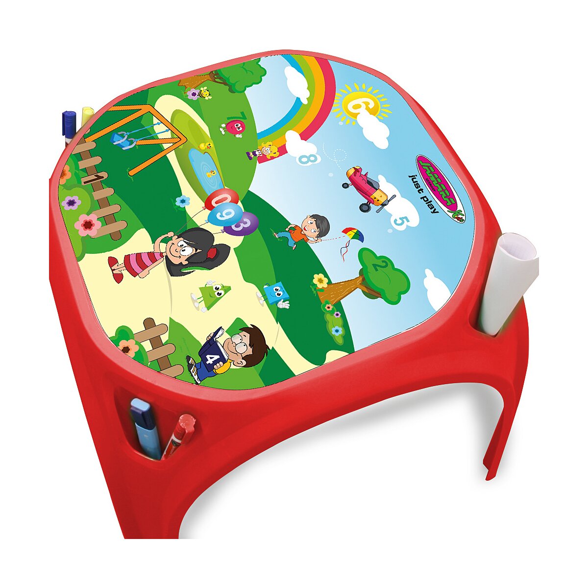 Detta barnbord från JAMARA är utrustat med robusta gummifötter som säkerställer stabilitet och säkerhet under lek och lärande. Gummifötterna skyddar även golvet från repor och skador, vilket gör bordet till ett praktiskt val för hemmet.
