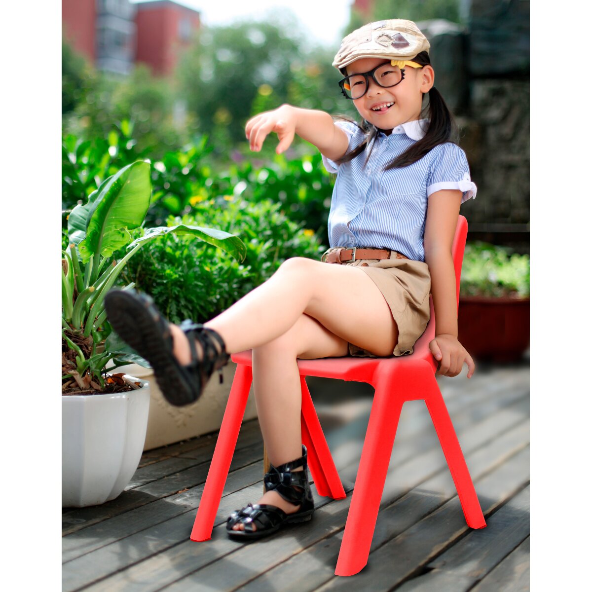 Den färgglada barnstolen från JAMARA är en utmärkt lösning för både trädgården och barnrummet. Med sin praktiska och platsbesparande design kan den enkelt staplas när den inte används.