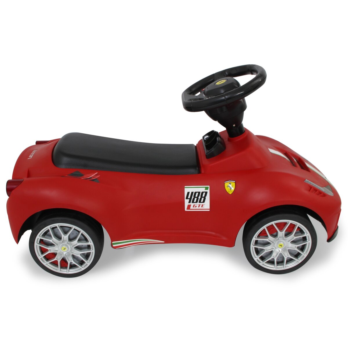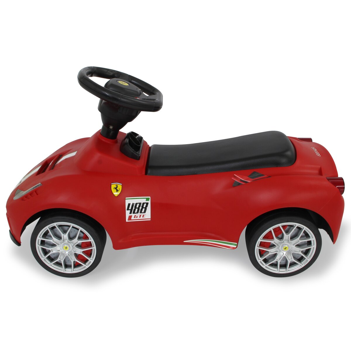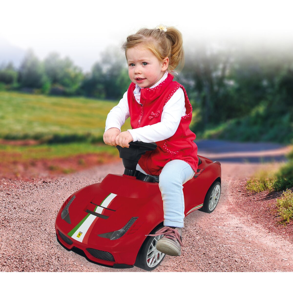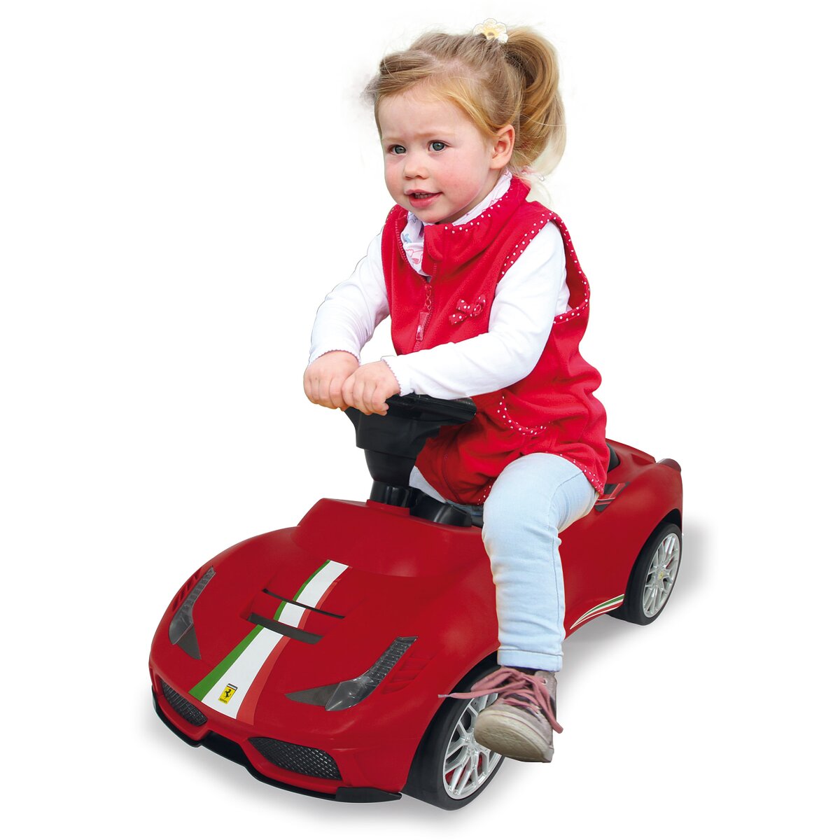Ferrari-rutschkanan har en låg sitthöjd och ett specialdesignat tippskydd baktill, vilket säkerställer säkerheten för ditt barn. Den lättgreppade ratten med tuta och detaljer som kylargrillen och fälgarna är modellerade efter originalet, vilket ger en autentisk känsla.