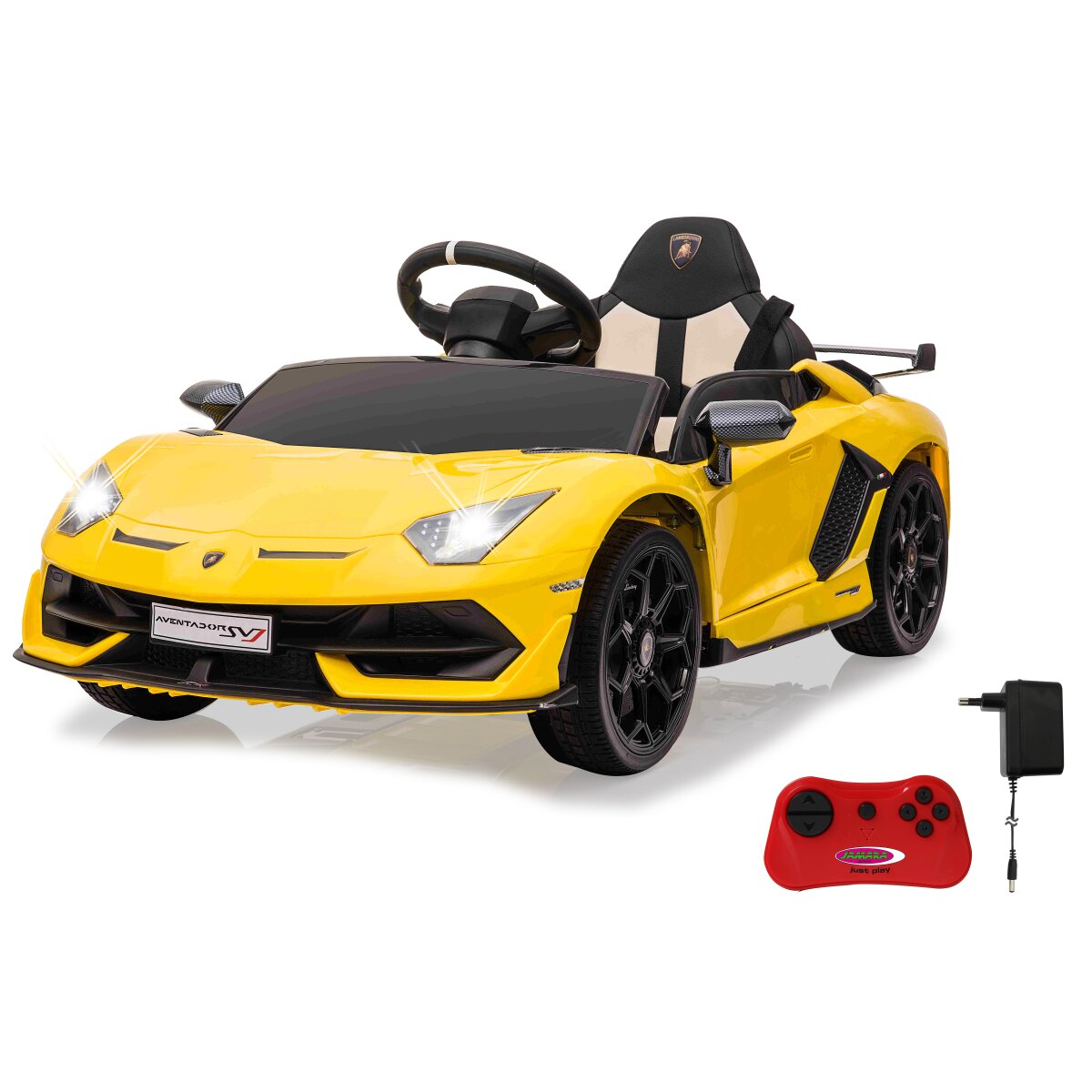 Vem har inte drömt om att köra en riktig Lamborghini Aventador? Nu kan den drömmen bli sann – med Lamborghini från Jamara. Tanka bara tanken, hoppa in, gasa och kör iväg. Detta kommer att ge dina små en otrolig spänning, och när de tar ledningen via fjärrstyrning kan deras barn koncentrera sig helt på tutan och musiken på sidan av ratten.