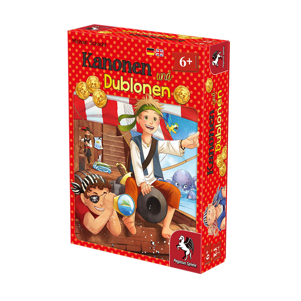 Kanonen und Dublonen är ett barnspel som passar för 2 till 6+ spelare i åldern 6 till 10 år. Med en speltid på 15 till 30 minuter är det lätt att passa in ett parti i en hektisk dag. Spelet är på engelska, vilket också kan hjälpa barn att förbättra sina språkkunskaper medan de har roligt.