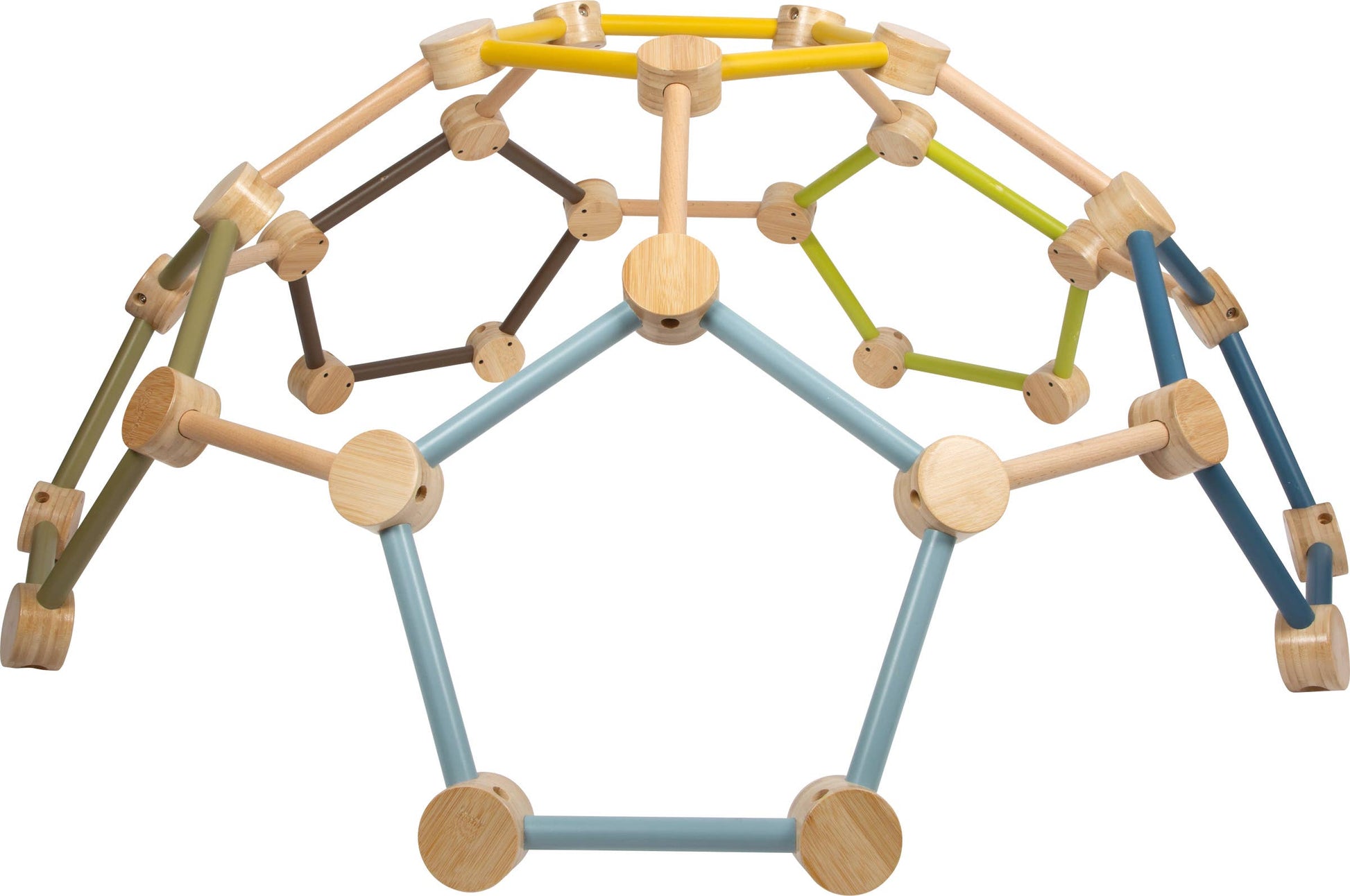 Erövra nya höjder på ett lekfullt sätt! Som en mångsidig klätterställning är denna polygonklättringskupol den perfekta följeslagaren för äventyrliga barn. Oavsett om det är en klätterställning, ett hemligt gömställe eller en plats för fantasifulla rollspel - den geometriska klätterkupolen erbjuder oändliga spelalternativ och många möjligheter att träna motorik. Den enkla installationen möjliggör en snabb start på ett klättringsäventyr, medan stabila anslutningar garanterar säkerheten för små klättrare. Kupolen är tillverkad av robust massivt trä och smälter harmoniskt in i alla barns rum tack vare kombinationen av massor av naturligt trä och de typiska ”äventyrsfärgerna” och imponerar med sin robusta hållbarhet och attraktiva utseende. En innovativ aktivitetsleksak för oändliga timmars lek. Lätt att montera tack vare förmonterade element.