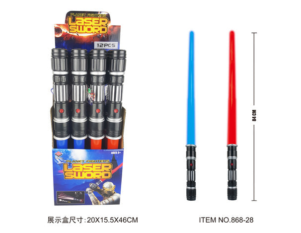 Lasersvärd med ljud och ljus i två olika färger. Mått 84cm