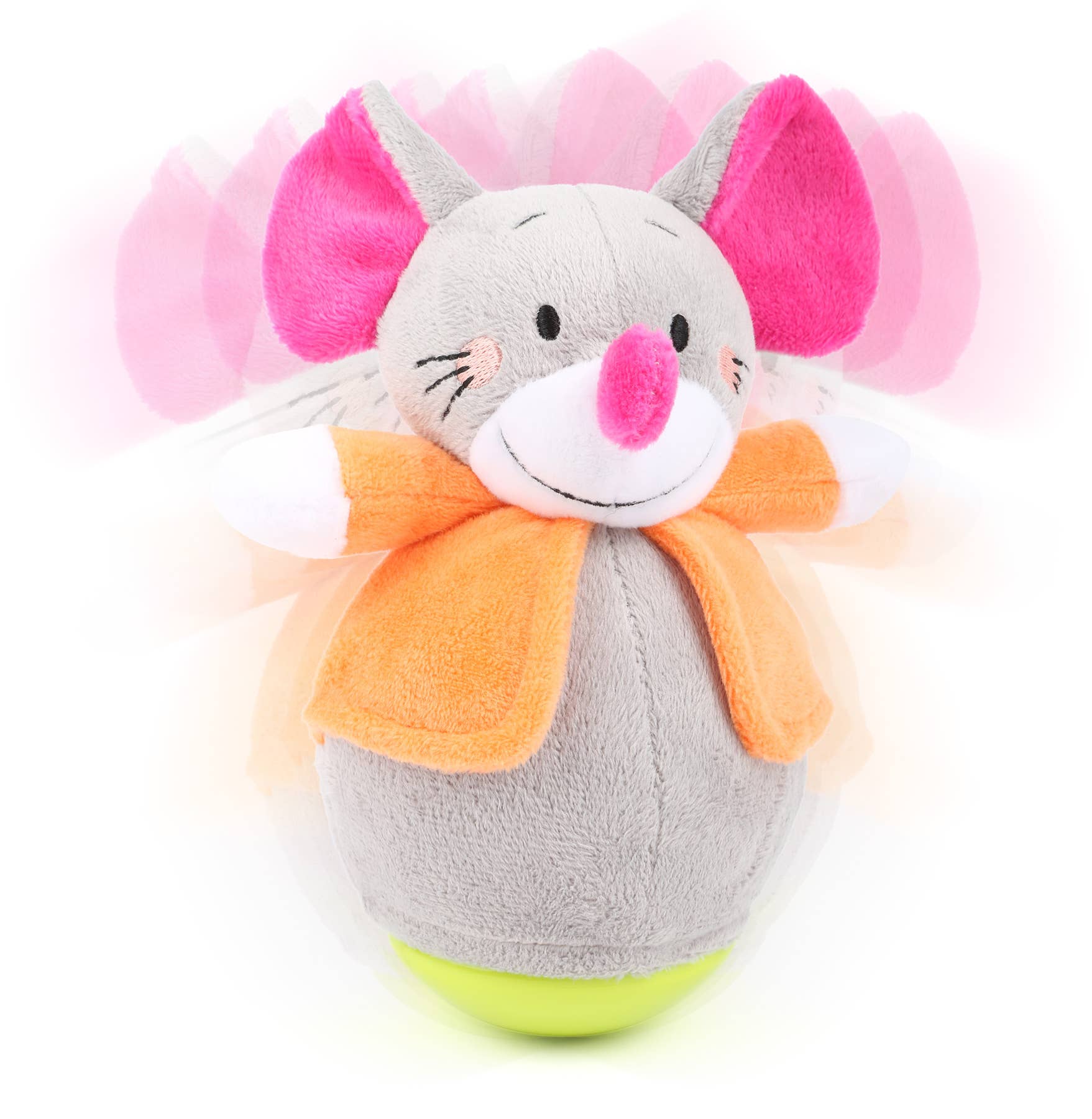 Denna mus ger aldrig upp! Den stand-up leksaken gjord av mjuk baby plysch wobbles upp och ner när poked och gör en glad klocka ljud. Den roliga musen i sin fluffiga plyschdräkt uppmuntrar barn såväl som småbarn att förstå och träna motoriska färdigheter på ett lekfullt sätt. Pågående spelglädje garanteras här.