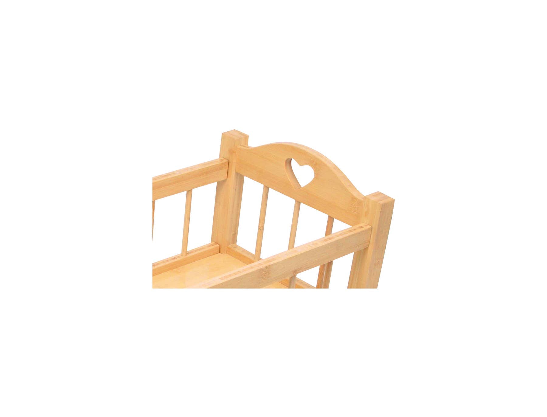 Denna dockvagga av klarlackerat naturligt trä är klassikern bland dockmöbler! I det aktiva rollspelet kan dockföräldrar försiktigt lugna sina nära och kära i drömmarnas land. Med ett utskuren hjärta i huvudänden och den enkla formen påminner vaggan om tidigare tider. Ett måste för varje barns rum, som också tränar sociala färdigheter i imitationsspel.