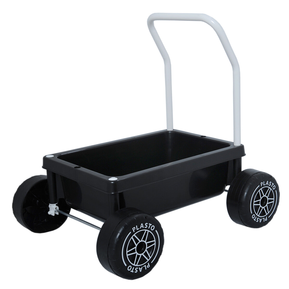 Plasto har utrustat denna vagn med tysta hjul, vilket gör den idealisk för användning inomhus utan att störa familjens lugn. De tysta hjulen bidrar till en smidig och behaglig användning.