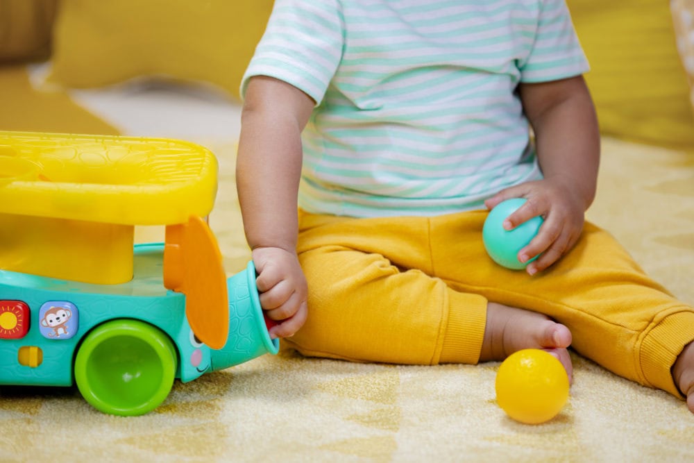 Med Bright Starts Pop & Roll Safari Bus kan ditt barn utveckla sina finmotoriska färdigheter samtidigt som de har roligt. Genom att släppa bollar i de två översta hålen eller klämma ut dem genom elefantens snabel, får barnet både skratt och lärande i ett.