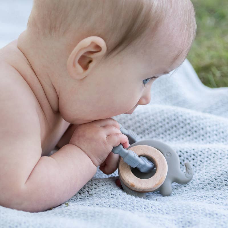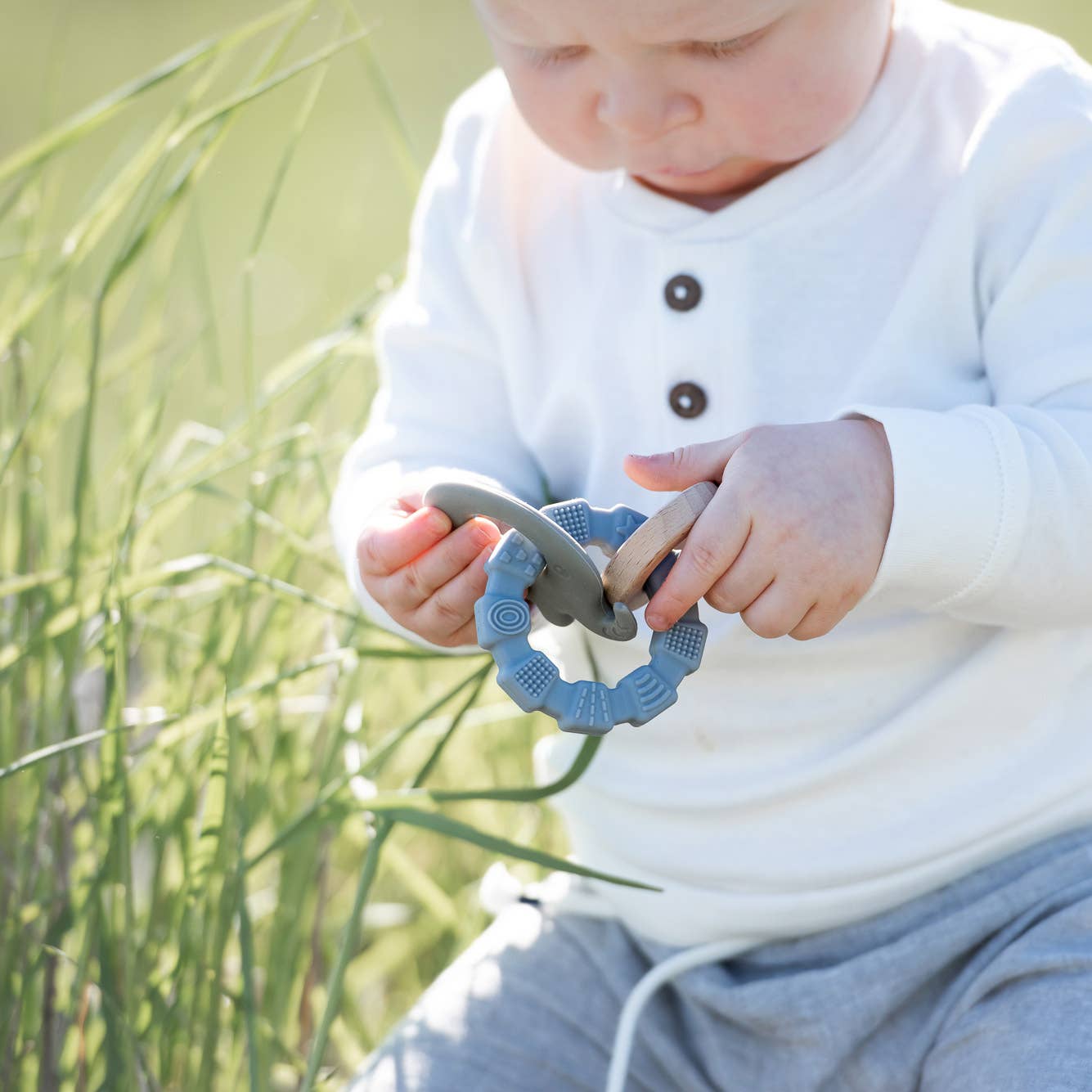 Summerville organic har valt material av hög kvalitet för denna bitring. Kombinationen av silikon och bokträ ger en hållbar leksak som tål både lek och tugg. Den gröna och grå färgen är stilren och passar in i alla miljöer. Denna teeterleksak är ett utmärkt val för föräldrar som söker en säker och hållbar produkt för sina barn.