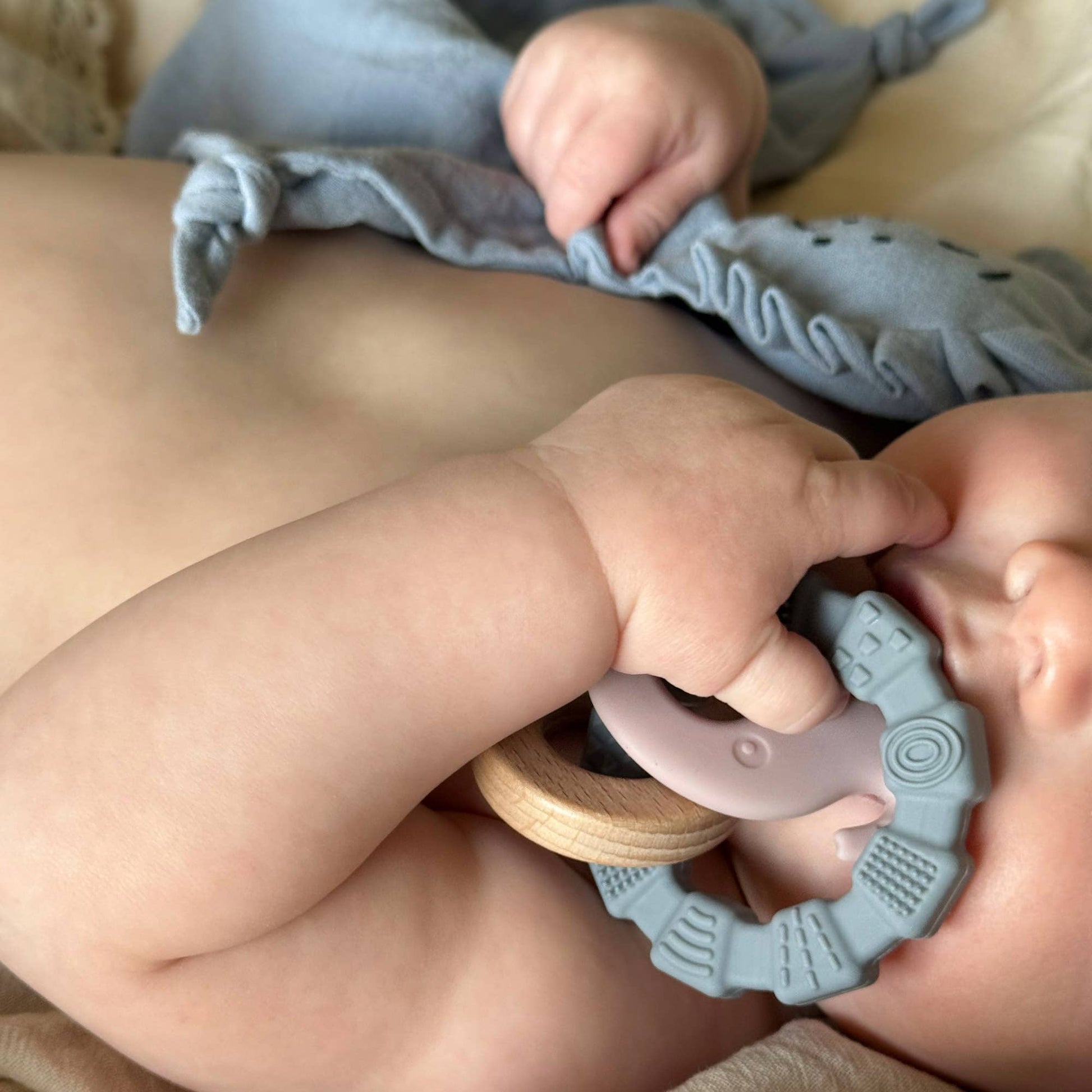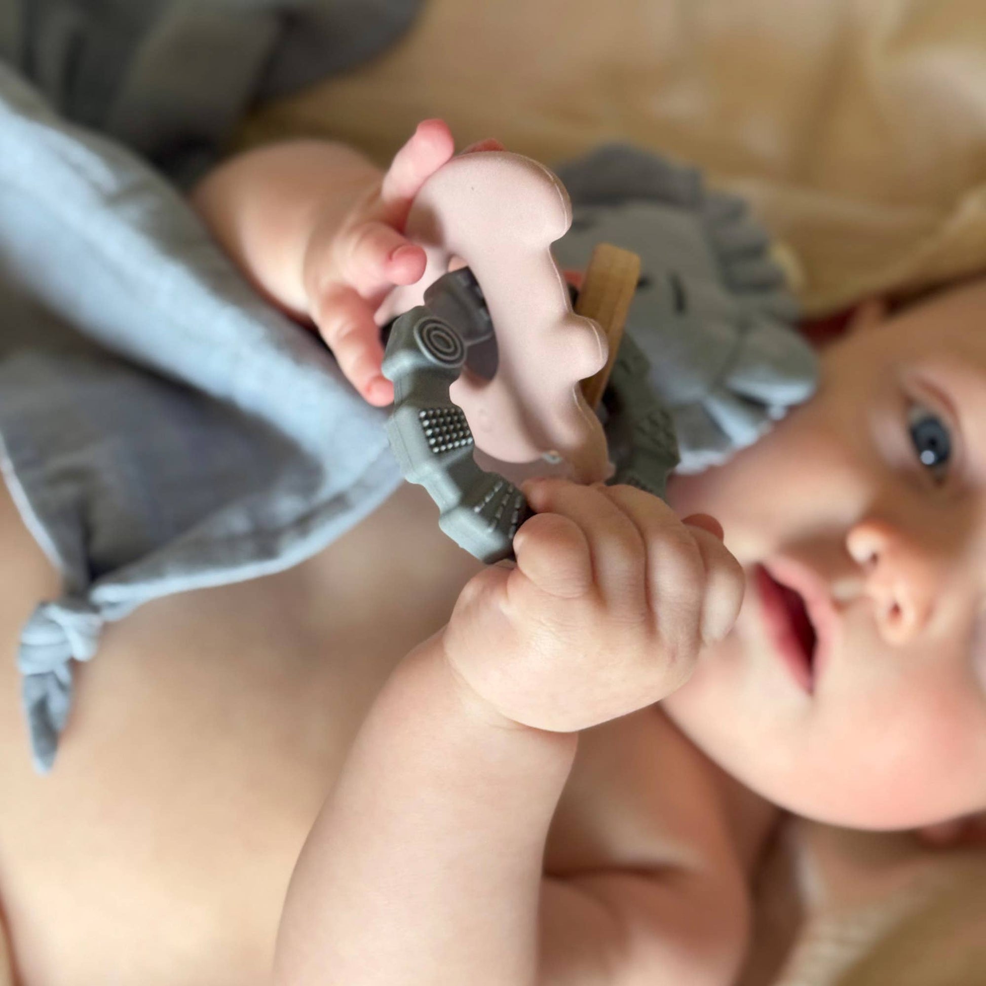 Denna leksak är tillverkad av silikon som är godkänd enligt både FDA och LFGB, vilket innebär att den är helt giftfri. Den är också BPA- och ftalatfri, vilket gör den till ett tryggt val för ditt barn. Träringen är gjord av FSC-certifierad bok, utan beläggning eller lack.