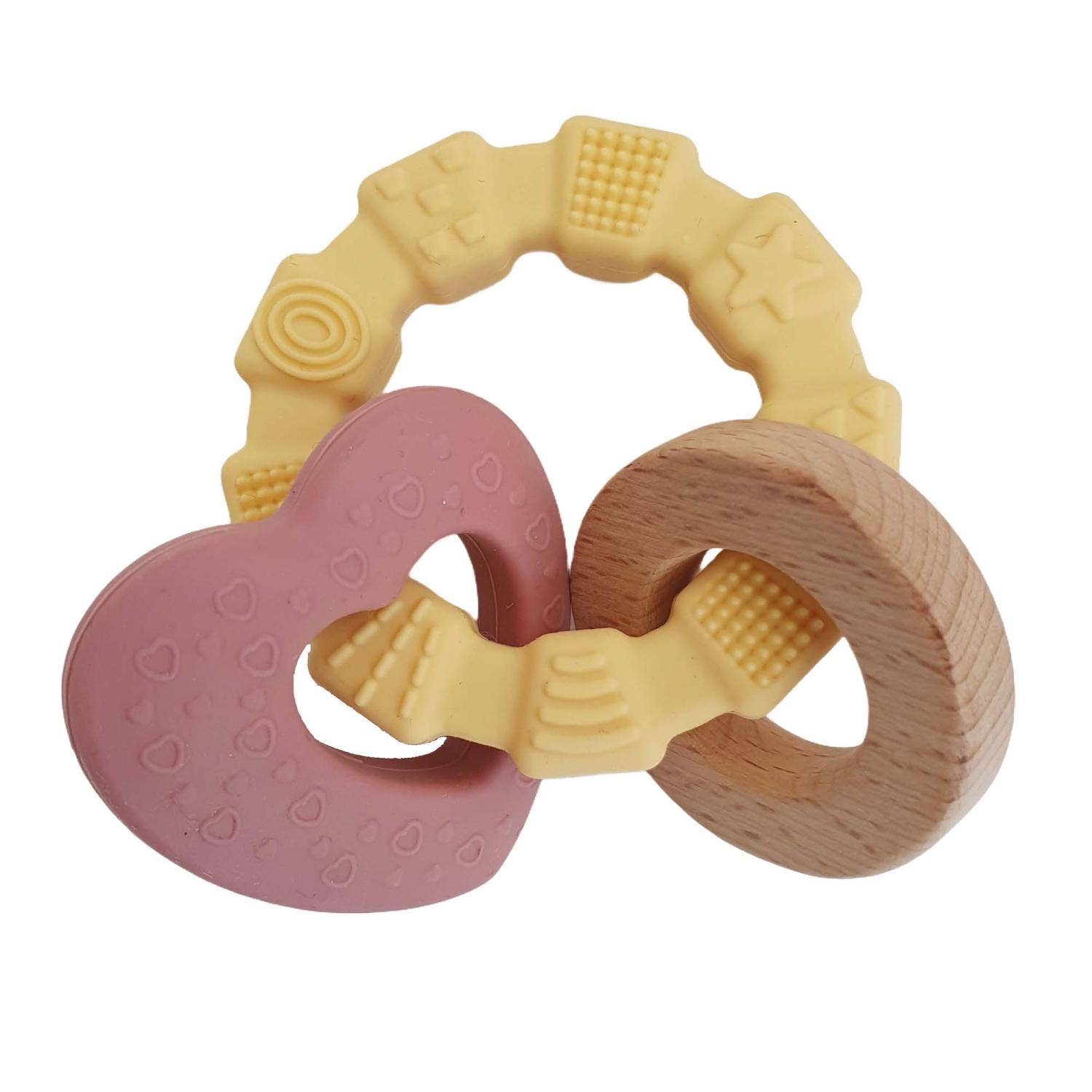 Denna bitring kombinerar kisel och trä för en unik känsla. Silikonet är godkänt enligt både FDA och LFGB, vilket innebär att det är helt giftfritt, samt BPA- och ftalatfritt. Träringen är tillverkad av FSC-certifierad bok, vilket garanterar hållbarhet och säkerhet för ditt barn.