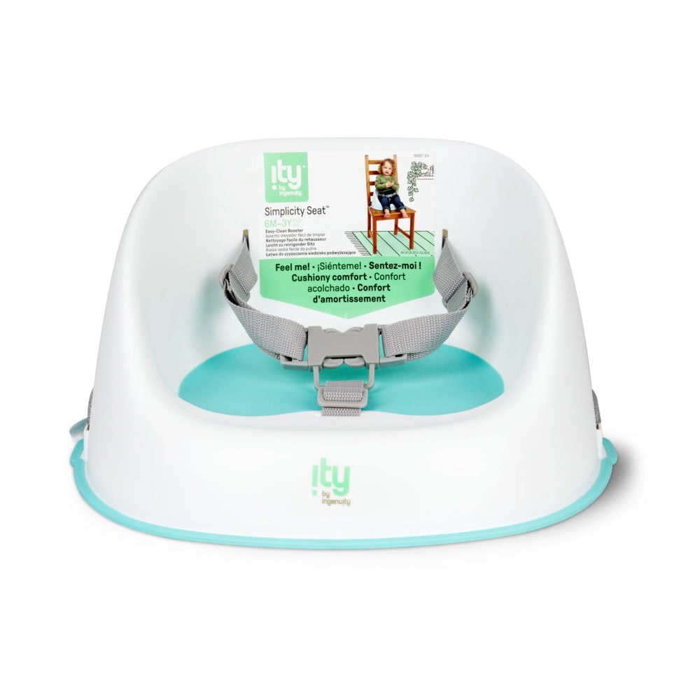 Med Ingenuity Simplicity Seat Easy-Clean Booster i teal kan du enkelt övergå från barnstol till matbord. Denna booster är utformad för att underlätta städningen och har en avtorkningsbar bas samt avtagbara, tvättbara remmar. Perfekt för kladdiga måltider och passar de flesta matstolar.