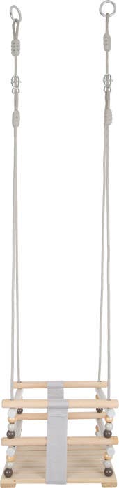 Denna minimalistiska gittergunga i skandinavisk stil lovar spädbarn och småbarn massor av gungande kul. De fyra stängda sidorna och två rivbeständiga remmar garanterar maximal säkerhet. Tack vare enkel grå och massor av naturligt, bekvämt trä ser gungan bra ut både inomhus och utomhus.