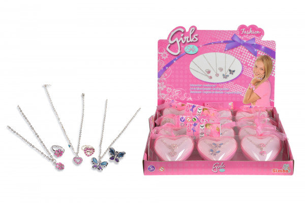 SIMBA presenterar det förtjusande smyckesetet SLG Ring + Necklace, 3-ass. Detta set är perfekt för unga smyckesälskare och kommer i en charmig hjärtformad ask. Setet innehåller både ett halsband och en ring, vilket gör det till en idealisk present för barn från 5 år och uppåt.