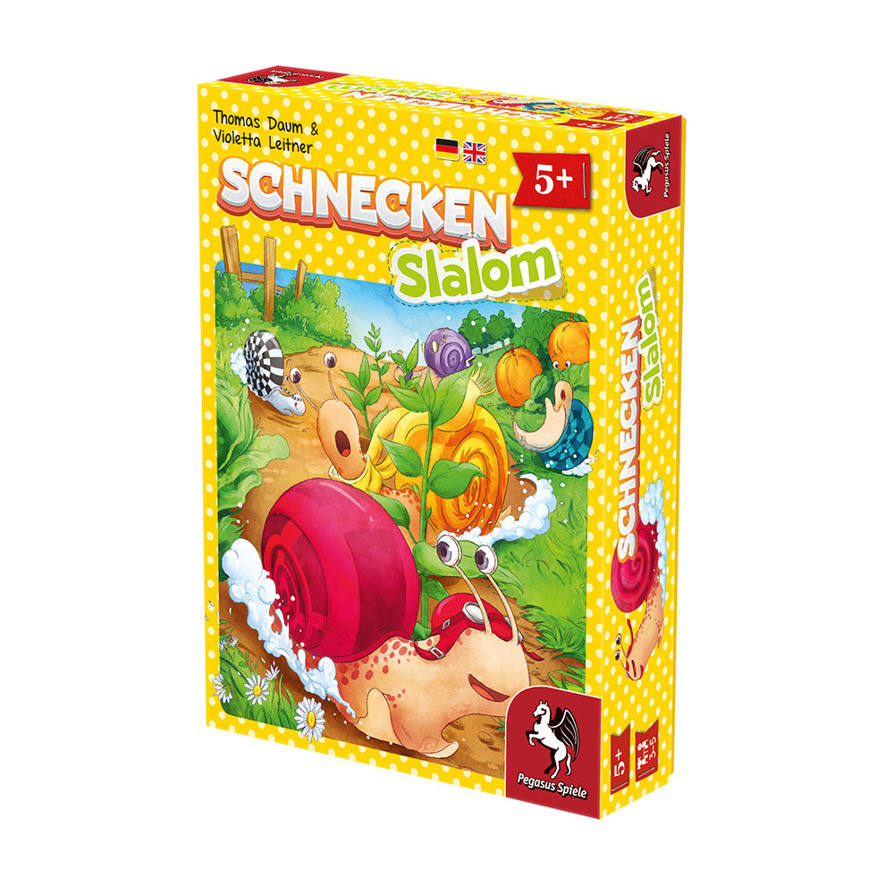 Pegasus Spiele presenterar det underhållande brädspelet Snail Slalom, där spelarna tar på sig rollen som hungriga sniglar. Målet är att navigera genom en slalom av gröna hinder för att nå maten i mitten av bordet. Det krävs både snabbhet och försiktighet för att lyckas i detta spännande spel.