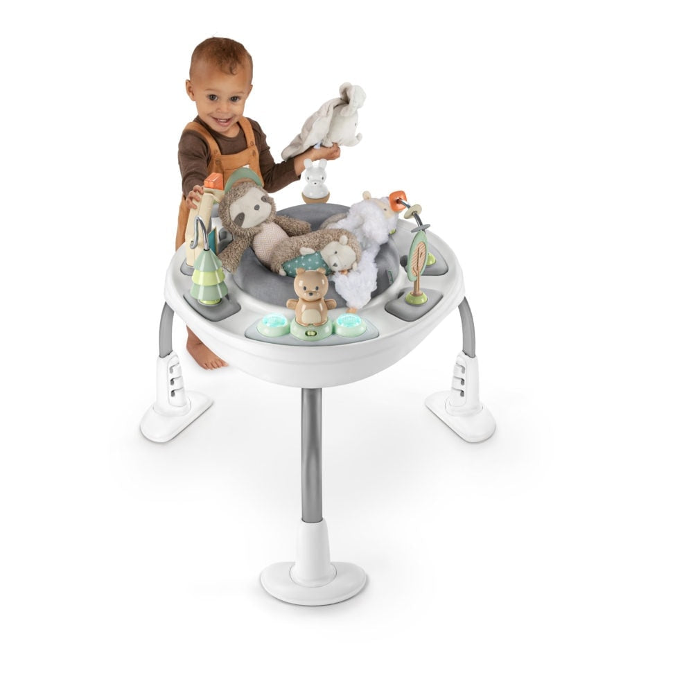 Ingenuity™ Spring & Sprout™ 2-in-1 Activity Jumper & Table - First Forest™ är det perfekta valet för barn mellan 6-24+ månader. Denna lekutrustning erbjuder både hoppglädje och lekbord i ett. Med sina två lägen, hopp- och lekbordsläge, stimulerar den barnens grovmotoriska färdigheter.