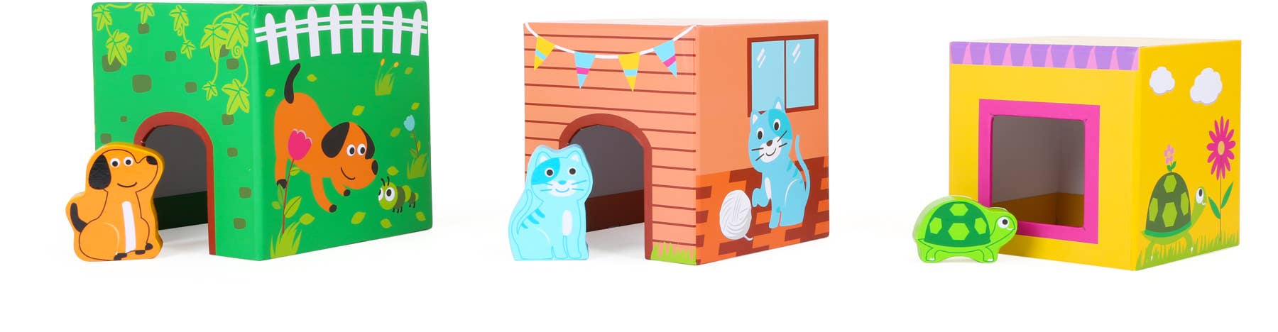 Det finns ett liv och rörelse här. Eftersom alla husdjur måste tilldelas rätt sovplats! De olika stora kuberna kan placeras ovanpå varandra på ett sådant sätt att ägaren till de söta djuren dyker upp på sidan akta dig för bedragare! Vem bygger det högsta tornet? I rätt ordning skapar kuberna av robust kartong olika motiv. Alla staplingskuber har en öppning där sex olika trädjur hittar sitt hem.