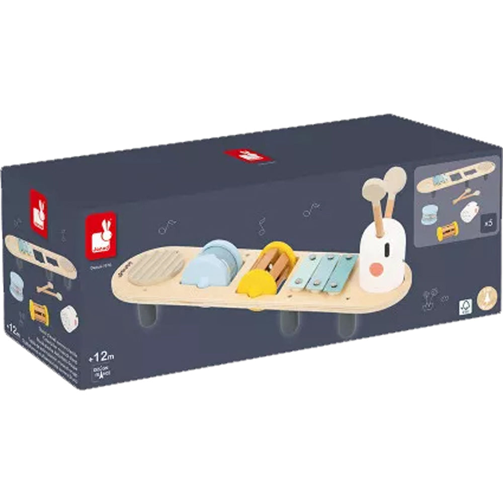 Janod presenterar SWC - Caterpillar Musical Stand, en innovativ leksak för barn från 12 månader och uppåt. Denna färgglada larv är inte bara en visuell glädje utan också ett komplett enmansband. Med fem inbyggda ljudaktiviteter kan ditt barn skapa sin egen symfoni och utforska olika ljudvärldar. Leksaken är en del av Janods Sweet Cocoon-kollektion och tillverkad av FSC™-certifierat trä.