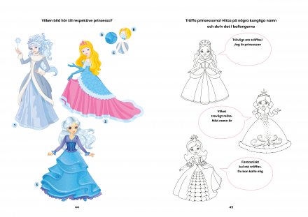 Ha det så kul med vackra prinsessor i deras vinterklädnader. Pysselboken erbjuder en rad aktiviteter där du kan njuta av att lösa frostfyllda utmaningar. Låt kreativiteten flöda när du klär prinsessorna i deras eleganta vinterdräkter.