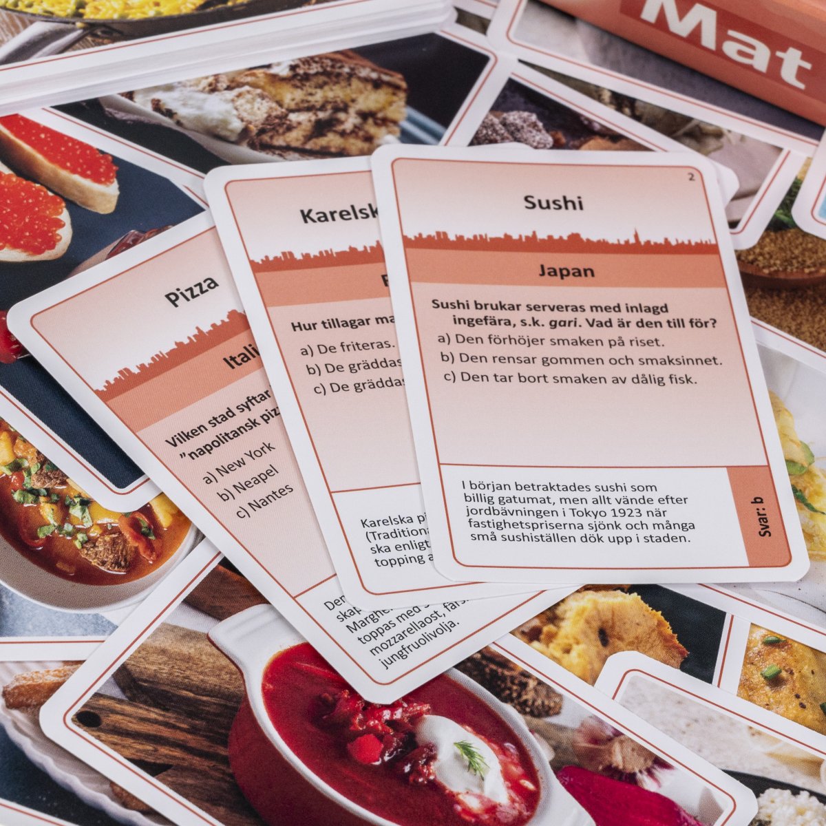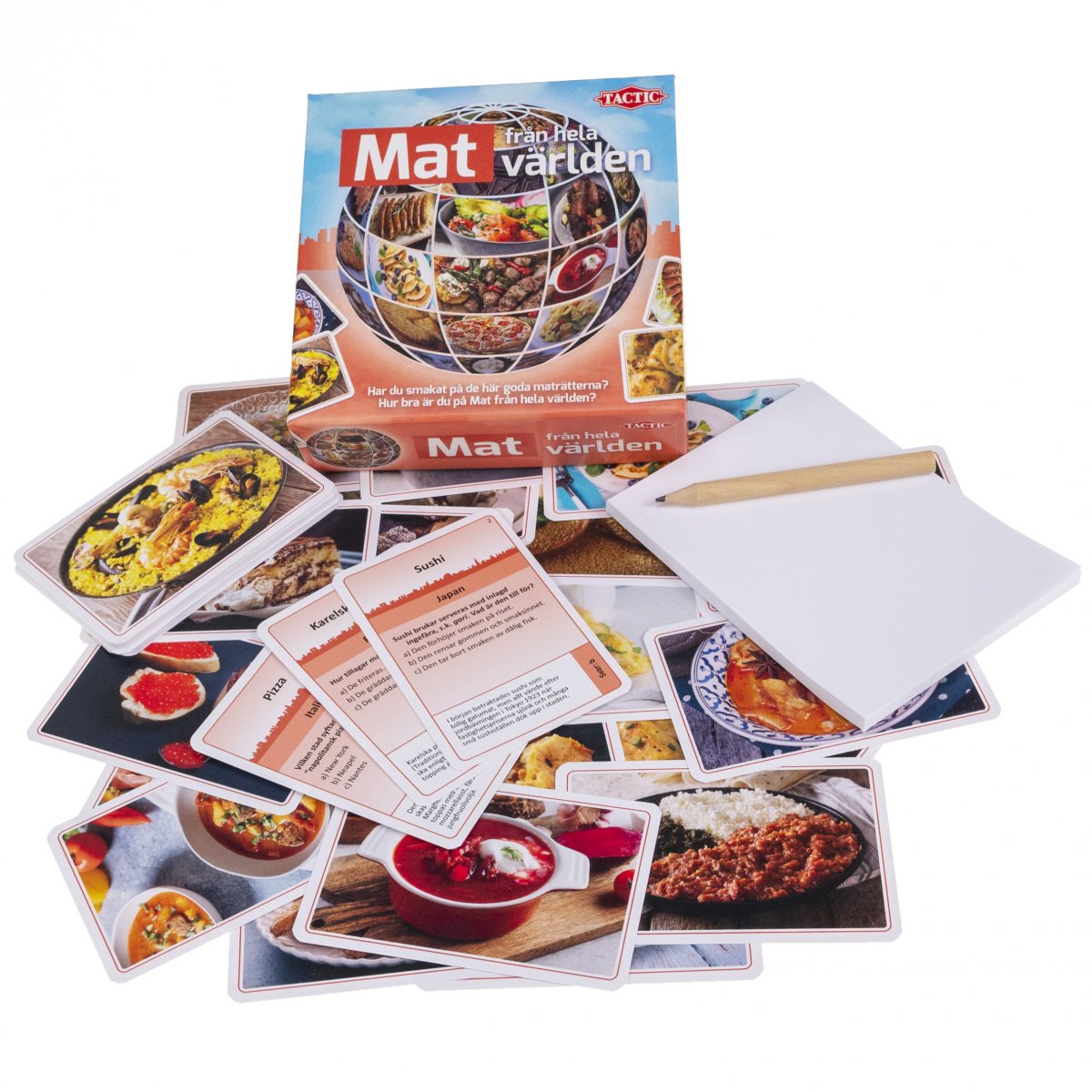 I detta spel tävlar spelarna om vem som bäst kan känna igen maten på korten och svara på frågorna om dem. Varje kort innehåller dessutom intressant information om maträtten, vilket gör spelet både lärorikt och underhållande. Det är en perfekt aktivitet för alla som älskar mat och vill lära sig mer om världens olika kök.
