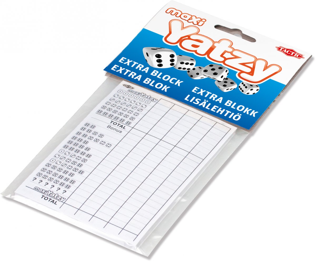 Tactic Maxi Yatzy Extrablock är enkla att använda och gör det smidigt att hålla spelet igång. De är ett praktiskt tillägg till ditt spel och säkerställer att du alltid har tillräckligt med poängblock till hands. Med dessa extrablock blir spelupplevelsen ännu bättre.