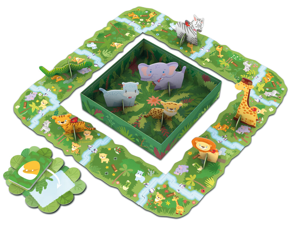Tactic presenterar det charmiga spelet "Tittut i djungeln" där varje djur ska hitta sin unge och föra hem den till boet i mitten. Spelet erbjuder en rolig och lärorik upplevelse för mindre barn, där de får lära sig om spelregler och turordning.