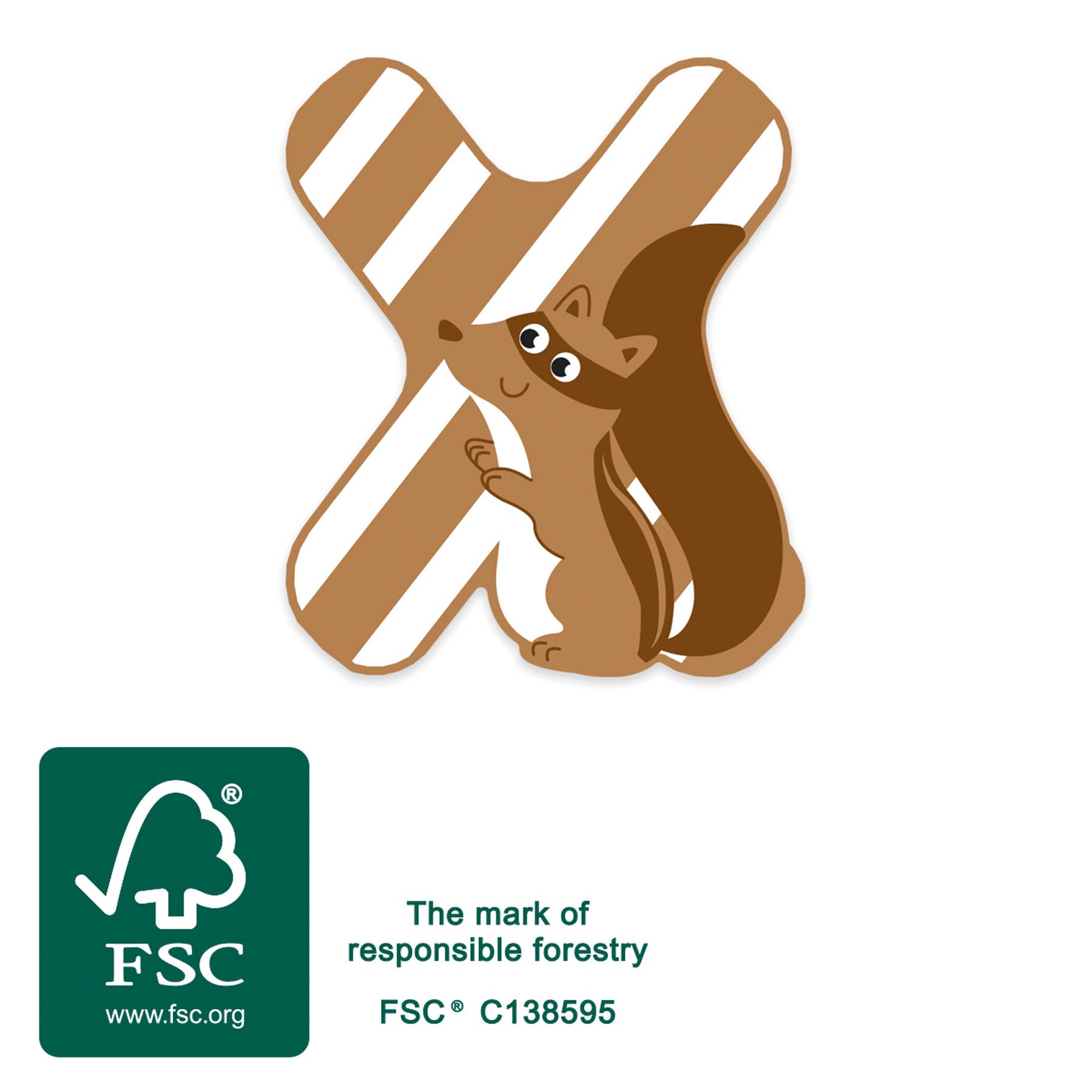 X är för Xerus! Animal letter fun garanteras med dessa ABC-bokstäver gjorda av FSC® 100% certifierat trä, tilltalande för barn. Tillsammans kan djurbokstäverna användas för att sätta ihop namn, förkortningar eller ord individuellt. Perfekt för små nybörjare och även ett trevligt blickfång som dörrbrev till barnrummet. Varje bokstav är märkt med ett djur som matchar dess första bokstav i det tyska namnet. Rundade kanter ger bokstäverna en behaglig känsla. Enskilda bokstäver, ord eller fraser: träbokstäver är riktiga klassiker för att dekorera barnrum.
