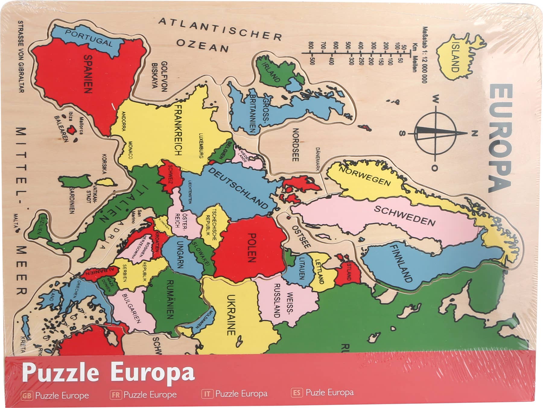 Detta ”Europa” -pussel tränar inte bara barns motoriska färdigheter utan lär också känna Europa på ett lekfullt sätt. Ländernas gränser och färgmarkeringarna hjälper till med orientering och undervisar de olika europeiska länderna och deras geografiska läge. Idealisk för (före) skolbarn.