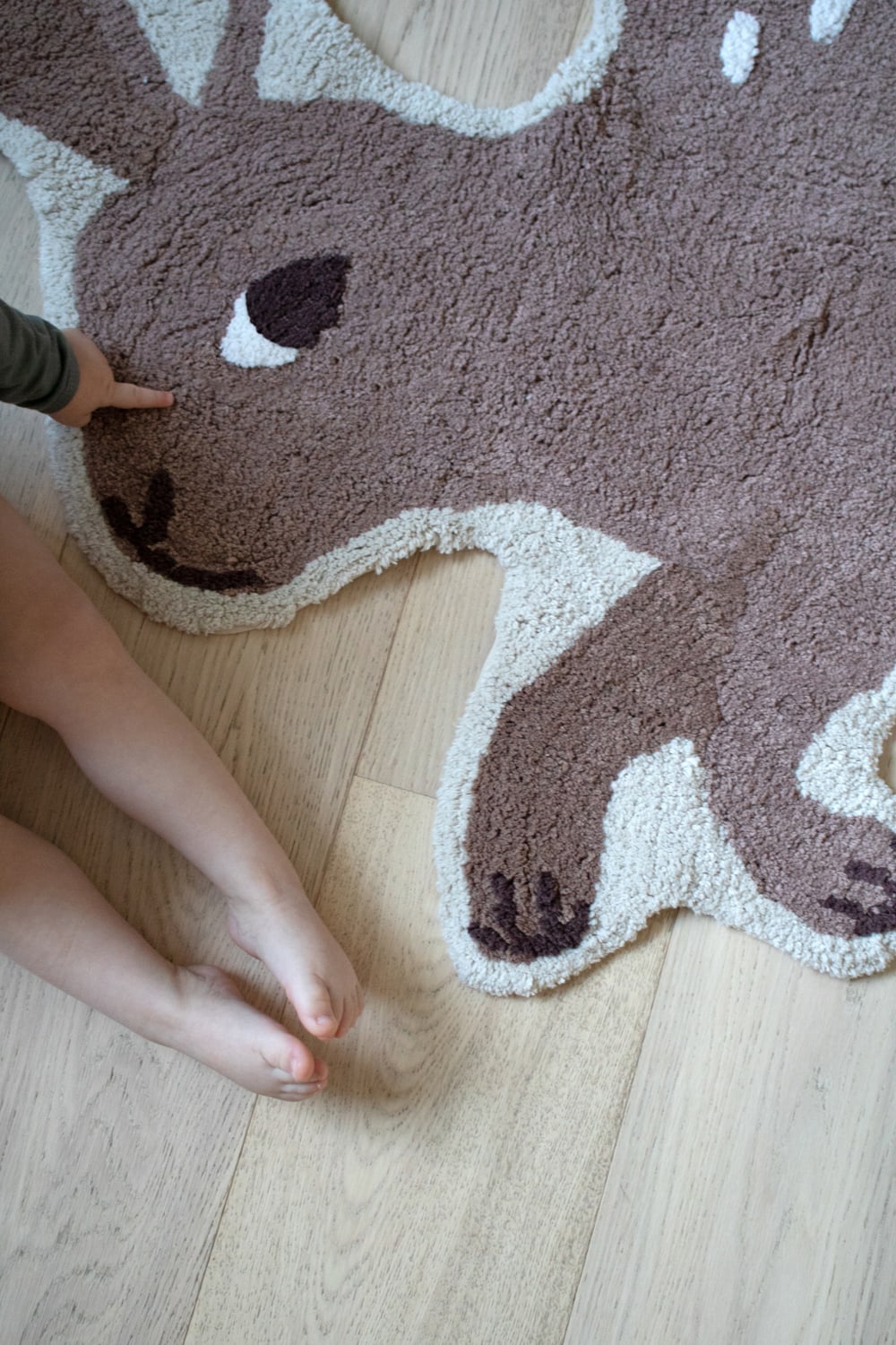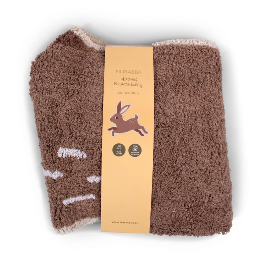 Filibabba presenterar en charmig matta formad som en söt kanin i bruna och krämfärgade toner. Denna tuftade matta, Bella the bunny, är tillverkad av 100% bomull och har en lång lugg som känns mjuk och skön under bara fötter. Det är en perfekt detalj för att skapa en mysig och varm atmosfär i barnrummet eller lekområdet.