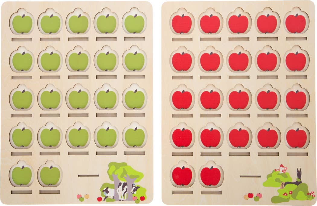Vem moppade äpplen? I detta populära gissningsspel för hela familjen är goda observationsförmågor viktiga, eftersom det är viktigt att snabbt identifiera karaktären hos de ”4 vänner” du letar efter med smarta frågor! Ett klassiskt spel tillverkat av robust trä i en särskilt barnvänlig design! Med två spelbrädor för att ställa in gissningsplattorna och 22 kartongkort för att rita figuren som ska gissas. 2-i-1: pusselspelet kan också användas som ett klassiskt memo! Med högkvalitativ leksakslåda för förvaring. Olga the Cow och Heinz the Rooster försöker gissa vem som stal äpplen från betesmarken. Men de två misstänkta har förklädd sig väl som kamouflage! Det populära frågespel är perfekt för barn att diskutera ämnet likheter och skillnader på ett lekfullt sätt. Brädspelet med sina mycket enkla spelregler inspirerar både unga och gamla när det gäller snabba spelrundor och främjar också förmågan att kombinera och koncentrera sig.
