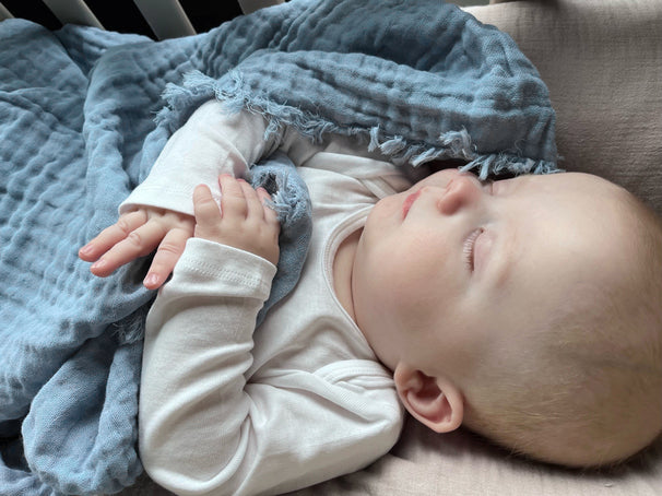 Vinter & Bloom erbjuder en mjuk och luftig muslinfilt i GOTS-certifierad ekologisk bomull. Filten har fransar och består av två lager tunn muslin, vilket förstärker bomullsvävens fuktabsorberande och temperaturreglerande egenskaper. Detta gör att barnet inte blir för varmt, vilket är perfekt för vilan eller i vagnen.