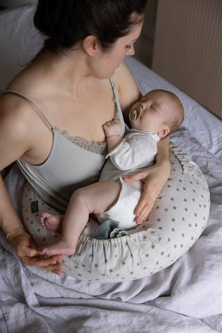 Denna amningskudde är sydd i ett behagligt bomulls-/linnetyg med ett tidlöst klövermönster. Materialen är både GOTS- och Oeko-Tex-certifierade, vilket garanterar att kudden är fri från ämnen som kan vara skadliga för barnets hud och hälsa. Den ekologiska bomullen är odlad utan kemiska bekämpningsmedel, vilket gör den till ett tryggt val för ditt barn.